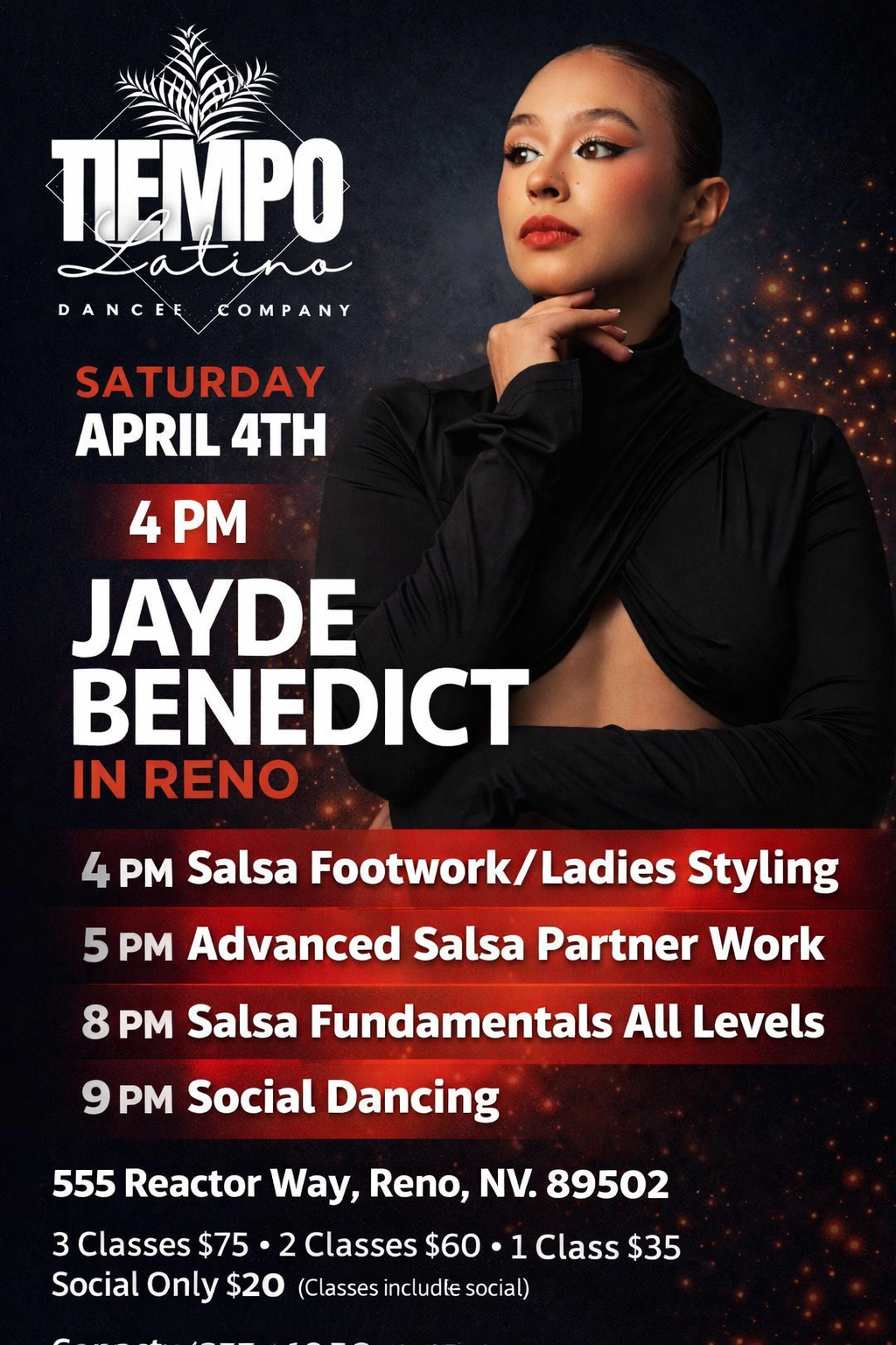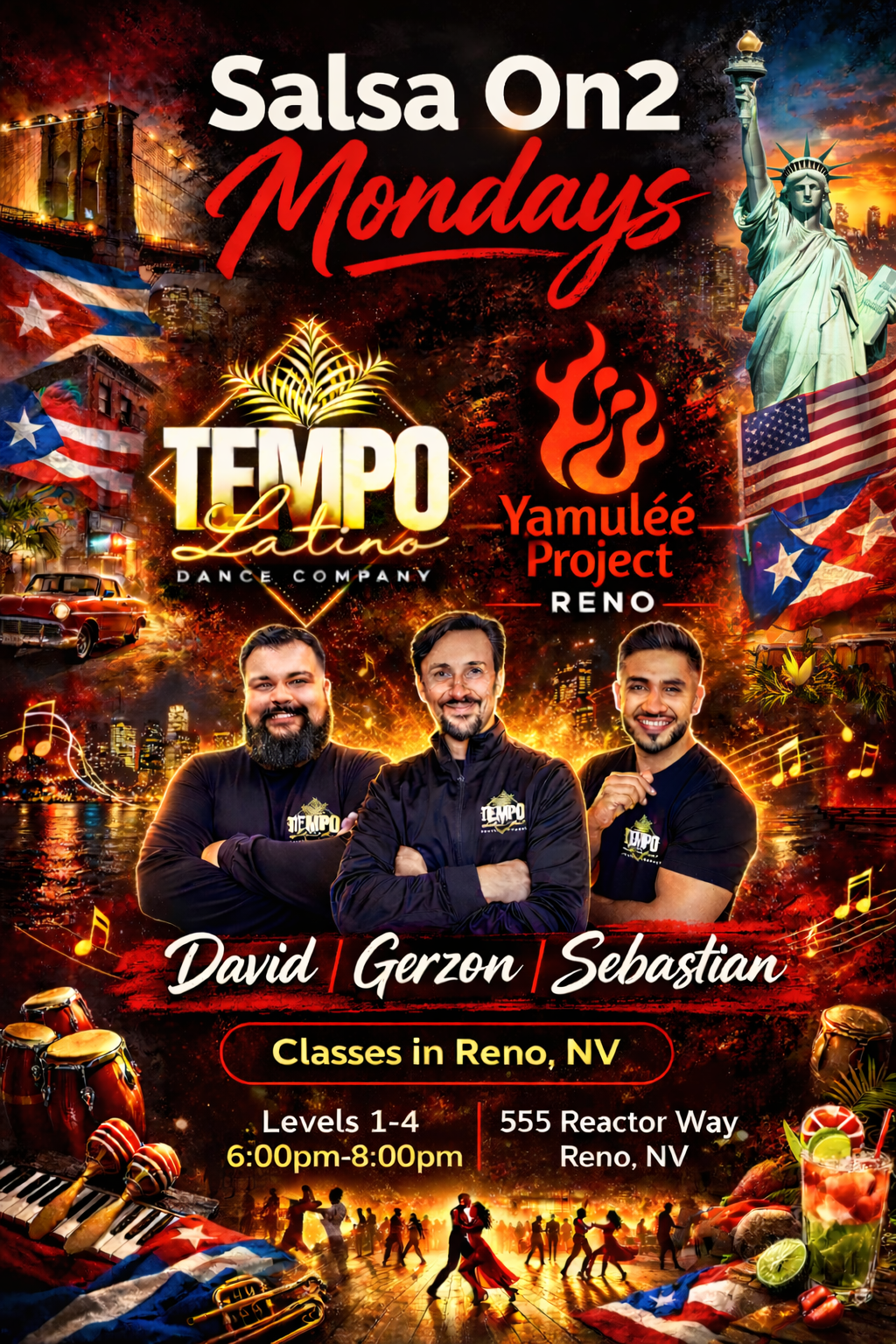 Host Salsa/Bachata Socials every Thursdays & Fridays. All of his group Classes are held at 555 Reactor way, Reno. Level 1 Classes are only $10 , all other classes are $20. Strongly believes that being part of a Salsa dance community should be cost-effective, that is why most events around town are FREE!