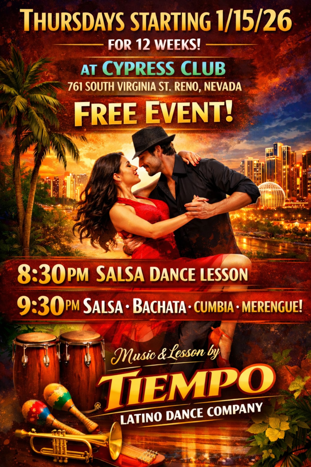 Salsa, Bachata, Cumbia, & more dancing in Reno